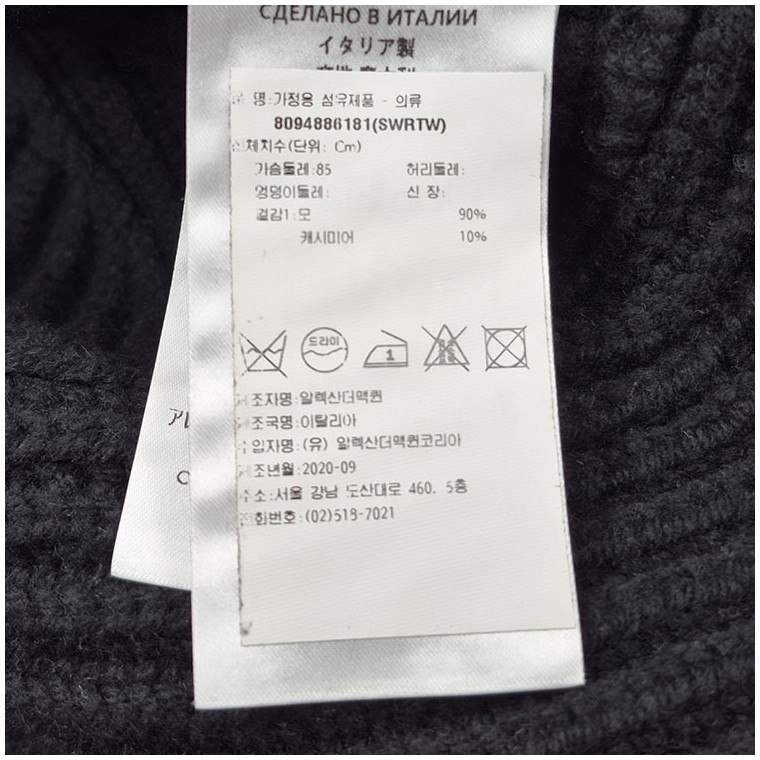 소재 : 울 90%, 캐시미어 10%