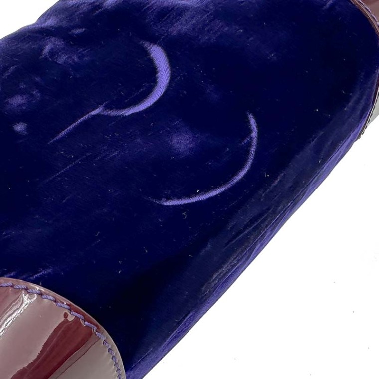 내용: 보라빛이 도는 고급스러운 벳벳소재와 깔끔한 페이던트의 조화가 멋스러운 숄더백으로 금장 큐빅 스트랩이 고급스러움을 강조합니다.